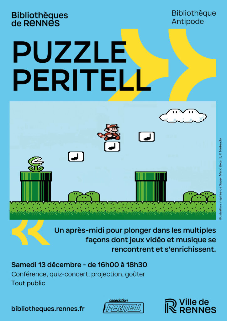 À compter du samedi 13/12/25, Peritell vous donne rendez-vous dans les bibliothèques rennaises, autour du thème ‘Jeux vidéo et musiques populaires’.